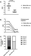 We included 15 patients with PSE. Mean age was 30.3±12.8 years. 53.4% were female. PPR without the use of Z.1 filter showed that the population in this study presented PPR in the following distribution: Type 4: 20% (n: 3); Type 3: 46.6% (n: 7); Type 2: 20% (n: 3); Type 1: 13.4% (n: 2); Type 1 (Fig. 1A). Our findings showed a significant decrease in PPR severity after the use of Filters Zeiss F.1 filters (0.4±0.2 vs. 2.7±0.9; p<0.001) (Fig. 1B). With the use of Zeiss F.1 filters, in more than half of the patients (60%) PPR was abolished (Fig. 1C). Type 1 were 6 patients and with PPR Abolition, 9 patients.