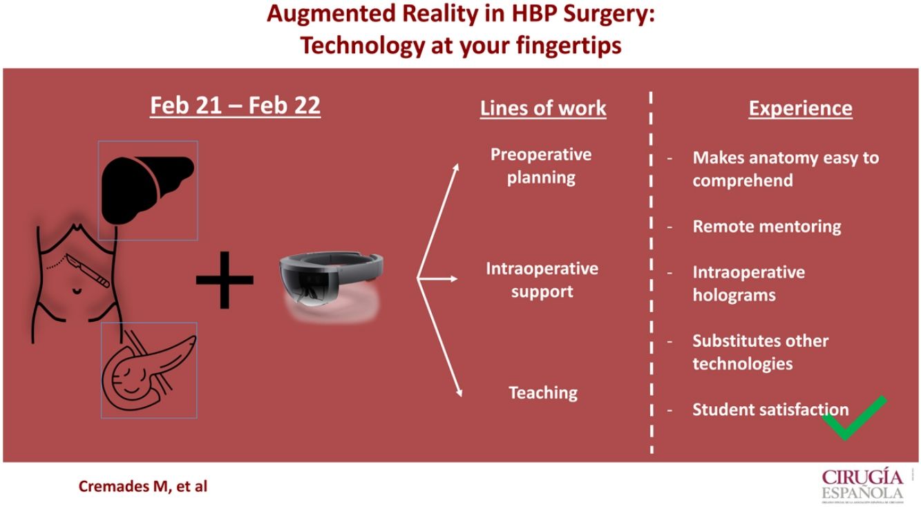 Discussion of the experienceAR is a relatively new technology that combines real environments with virtual holograms that can be interacted with as if they were real, which can improve outcomes and the perceived experience in HBP surgery.