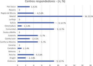 ResultsOverviewThe survey was completed in its entirety by 74 surgeons, so these 74 surveys comprise the basis for these results, each of which is from a different hospital. Online completion of the survey took an average time of 2−5 min in 65% of survey participants. The autonomous community with the highest participation was Madrid (16 surveys [22.5%]), followed by Andalusia, Valencia and Galicia, each of them with 9 surveys (12.7%) (Table 3).