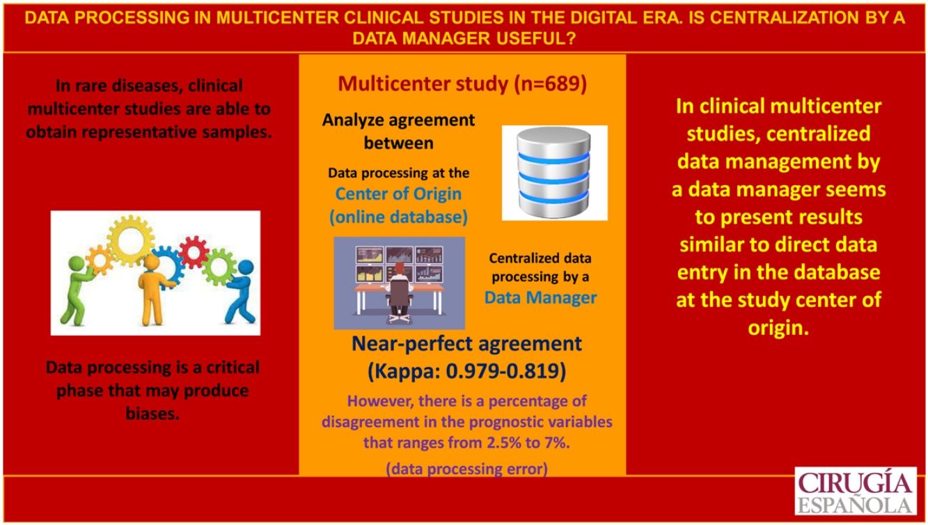 ConclusionsIn multicenter clinical studies, the centralized data protocolization o by a data-manager seems to present similar results to the direct protocolization in the database in the center of origin.