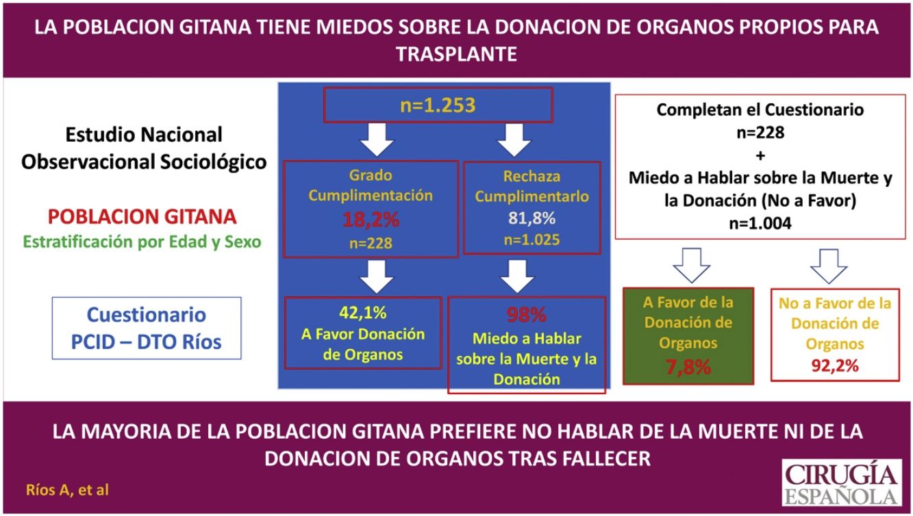 This cultural and social approach to the process of death and mourning largely explains the lack of studies on organ donation and transplantation. This situation is conditioned by this ancestral fear, which means that Roma people do not even want to talk about the subject. Thus, the first attempts to approach this population to assess their attitude towards organ donation were a failure11 and data were only obtained from a highly aware subgroup of the Roma population, such as those with a university education.12