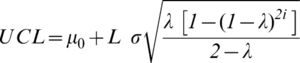 where the variables N+ and N- are the number of consecutive periods in which the respective Ci values were higher than zero; that is, they indicate the moment when the process mean changed. According to Montgomery,5 the CUSUM chart demonstrates good performance when it is used to study individual observations. Some comparisons between the CUSUM chart and the traditional Shewhart charts can be found in Costa et al.4The Exponentially Weighted Moving Average Control Chart4,5The EWMA chart is a good alternative to the Shewhart chart when the aim is to detect small shifts in the process mean, including shifts of the order of one or two standard deviations.4 It adjusts to autocorrelated data, while the CUSUM and Shewhart charts assume independence among sample observations. It is also less sensitive to the lack of normality assumption, as shown by Montgomery.5