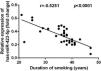 The plasma miR-423-5p level in COPD patients was inversely correlated with the duration of smoking (r = -0.5251, p < 0.0001; Fig. 4).