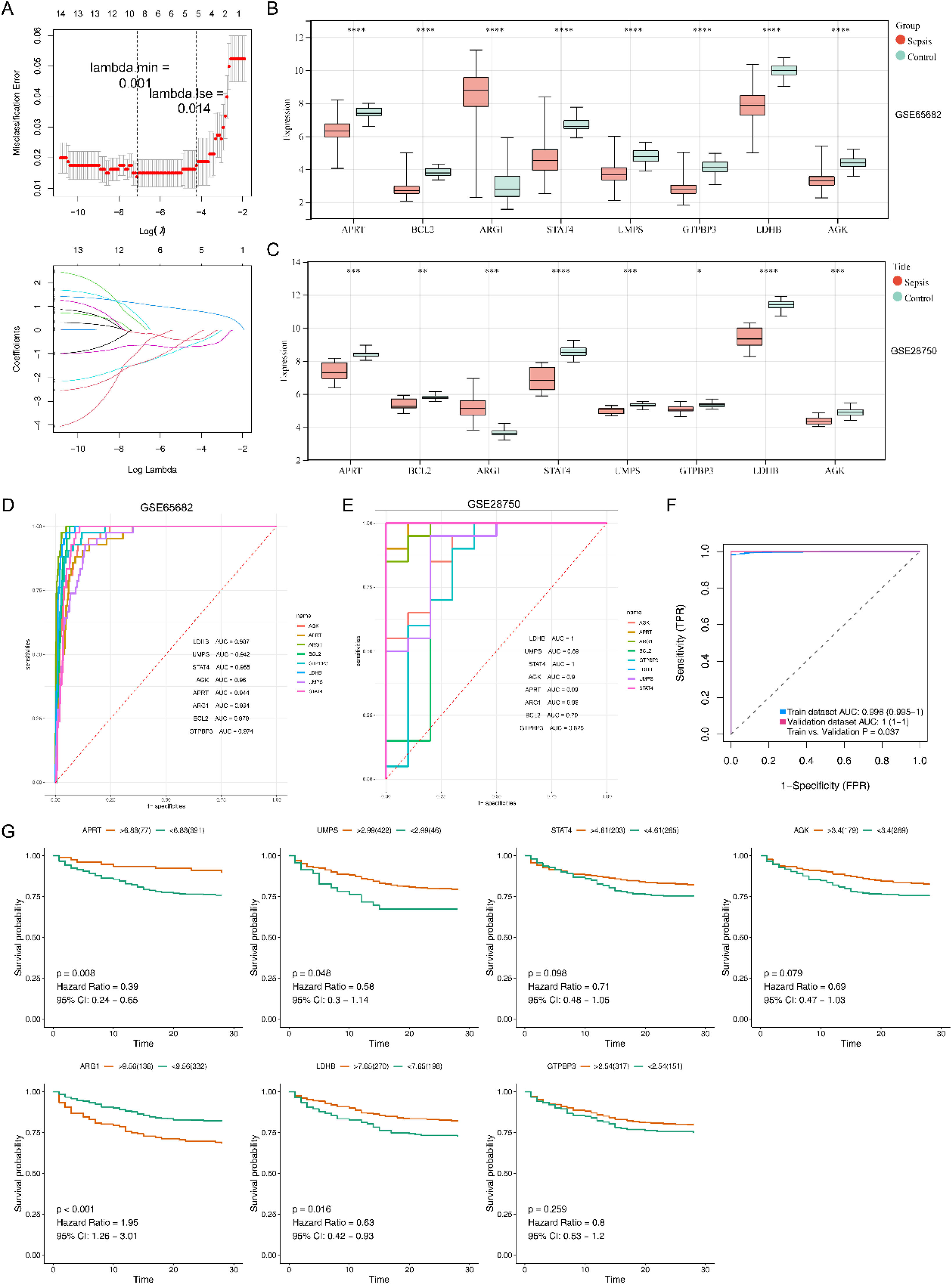 The key genes were analyzed using the machine learning LASSO regression algorithm to obtain candidate diagnostic genes. LASSO regression analysis was implemented on the expression of key genes based on sample information (Sepsis and normal) via glmnet (version 4.1–3).12