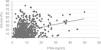RESULTSAs shown in Figure 1, a statistically significant correlation was observed between the tumor volume in cc and serum PSA levels (p<0.001). Likewise, as shown in Figure 2, a positive correlation was demonstrated between the percentage of tumor volume and serum PSA levels (p<0.001). A statistical analysis of the data plotted in Figure 1 shows that, for each 1 ng/ml increment in serum PSA, the absolute tumor volume increases by 0.302 cc. The linear regression equation is: