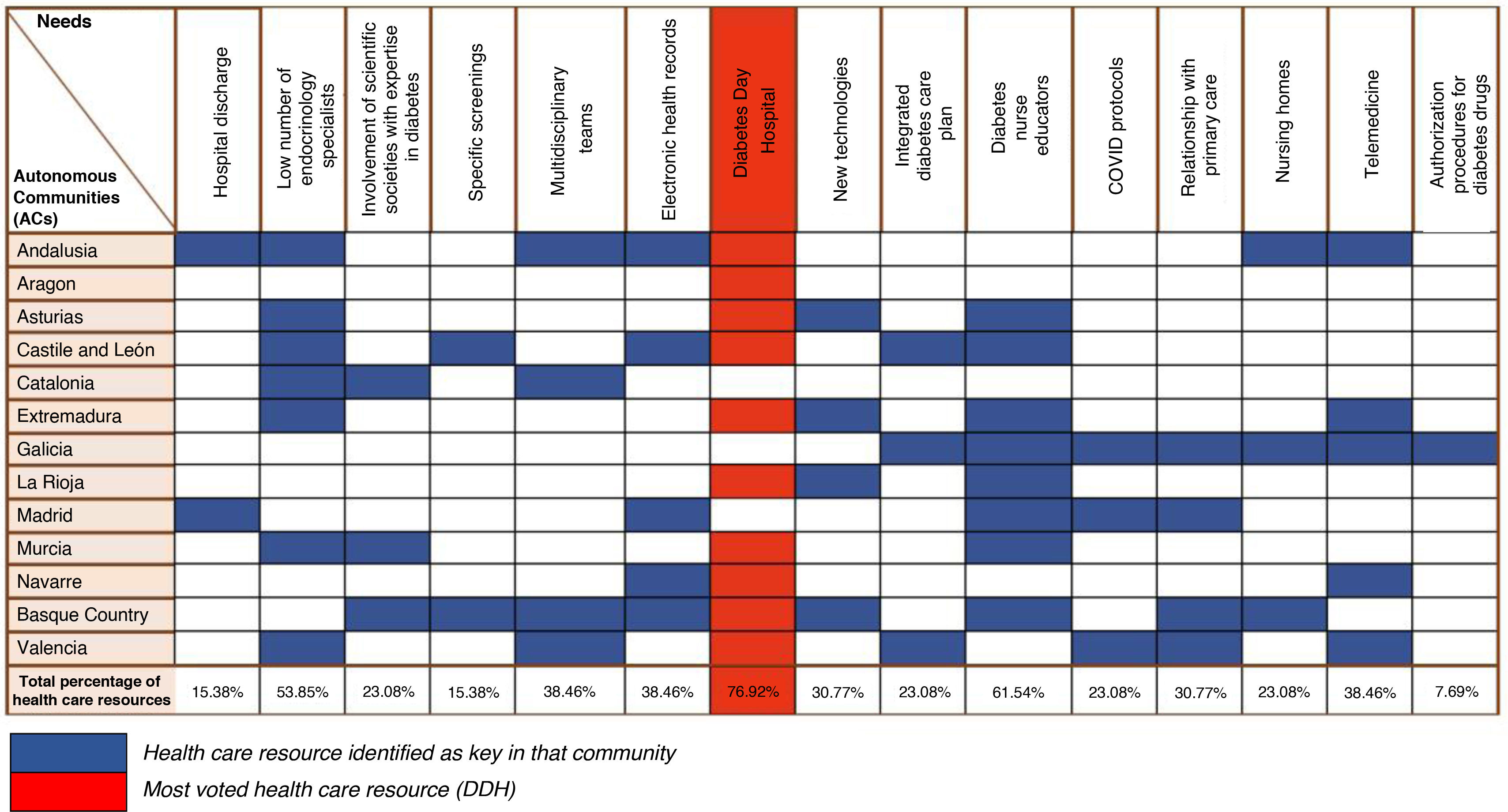 After presenting the project in 15 of Spain’s 17 autonomous communities, 76.9% identified the Diabetes Day Hospital (DDH) as a key resource in their region (Fig. 1).