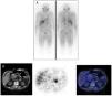 In patients with pheochromocytoma, 123I-MIBG scintigraphy sensitivity and specificity were estimated at 83%–100% and 95%–100%, respectively22 (Fig. 2). More extensive studies with larger numbers of extra-adrenal, multiple, recurrent and hereditary PGLs found a sensitivity of 52%–75%.23 At present, it is well known and has been repeatedly documented that 123I-MIBG scintigraphy should not be used in patients with PGLs associated with succinate dehydrogenase subunit B (SDHB) germline mutations, since the sensitivity of the test in this context is less than 50%.24 In cases involving head or neck PGLs, the sensitivity of 123I-MIBG scintigraphy is lower (18%–50%) than that of other functional imaging modalities, particularly 68Ga DOTA-somatostatin analogue (SSA)-using ones.25123I-MIBG scintigraphy is very useful for selecting potential candidates for treatment with 131I-MIBG in cases of malignant PPGLs.26,27