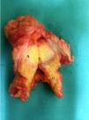 A supra-umbilical midline laparotomy was performed, identifying the following structures: a 5-cm implant that encompassed the umbilical region and greater omentum (Fig. 2); a mass that encompassed liver segments 4b, 5 and 8 and the gallbladder; and peritoneal implants in the pelvis and epiploic foramen. The umbilical implant was resected and two-layer gastrojejunostomy performed in the posterior wall of the stomach. Histological study showed an epithelial tumour composed of neoplastic cells with ample, slightly eosinophilic cytoplasm, an irregular, enlarged vesicular nucleus and a nucleolus, abundant mitoses, and no clear images of lymphovascular invasion. The immunohistochemical study was consistent with biliary adenocarcinoma. The patient died in the postoperative period due to respiratory failure.