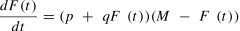 where F (t) is the cumulative fraction of adopters at time t; p represents the proportion of adopters driven by forces exogenous to the social dynamics of diffusion, such as advertisement or personal inclination towards innovation; and q represents the proportion of adopters driven by social pressure, i.e., the fact that many other people have adopted. The parameters p and q are referred toas an innovation parameter and an imitation parameter, respectively. Parameter M is the market potential, i.e., the total amount of adoption registered at the end of the process.