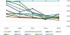 Variable importance stabilityAnother perspective on the evolution of VI for the environmental-innovation and governance variables as compared to traditional financial variables is offered by Fig. 10 for the Industrials sector and Fig. 11 for the IT sector. The mean, minimum, and maximum values were aggregated across all RF models that included these.