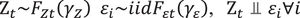 where Xt=[X1t,X2t,⋯,XNt]′, Zt represents the common factor, εit,i=1,2,3,⋯N denotes the idiosyncratic variable, C is the factor copula, and λit(γλ) is the ith factor loading at time t. The GAS model for logarithmic factor loadings is given by:The model would have N + 2 parameters requiring estimation without considering the parameters of Fεt and FZt. This can result in significant computational complexity, particularly when N is sizeable. To address this issue, Oh and Patton (2018) introduced the variance targeting (VT) method under the assumption of a strictly stationary sequence {λt}. Eq. (8) can be rewritten as