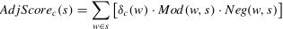 Neg(w,s)ϵ{−1,1}: negation term (inverts the polarity if negation words are detected within a window)