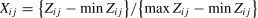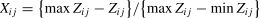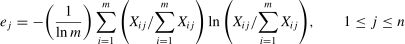 The information entropy value for the jth metric is calculated as follows: