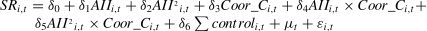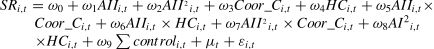 Subscript i denotes the firm, and t denotes the time period. SRi,t represents the service revenue of firm i in period t; AIIi,t and AII2i,t represent the measurements of AI innovation and the square of AI innovation, respectively; Coor_Ci,t and HCi,tare the moderating variables of coordination capability and human capital, respectively; ∑Controli,t refers to the set of control variables; μt is the year fixed effect; and εi,t is the random error term.
