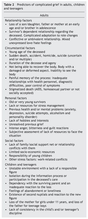 Table 2. Predictors of complicated grief in adults, children and teenagers