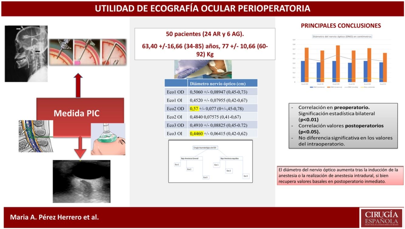ConclusionesEl diámetro del nervio óptico aumenta tras la inducción de la anestesia o la realización de anestesia intradural, si bien recupera valores basales en postoperatorio inmediato.