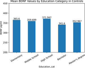 As shown in Fig. 1, mean BDNF levels were higher in females. Likewise, we can observe in Fig. 2 that according to the level of schooling, the level of BDNF increases.