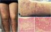 Case 3A 50-year-old female patient who consulted for skin lesions on the legs, arms, abdomen, and face of a week of evolution, associated with intense epigastric pain. In the previous days, she presented arthralgia and swelling in the wrists, elbows and knees. On admission, she presented palpable purpura on the extremities, abdomen, buttocks, and face (Fig. 3). The laboratories reported an elevated erythrocyte sedimentation rate (ESR) and urinary sediment without activity. The patient was taken to an upper digestive endoscopy which reported ischemic duodenitis. A skin biopsy was taken with a report of leukocytoclastic vasculitis and direct immunofluorescence positive for IgA. The immunological profile was negative.
