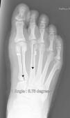 The use of percutaneous surgery only in moderate-severe cases, using osteotomies such as the Reverdin-Isham osteotomy is much more complex to perform than in mild cases, requiring a long learning curve with a minimum margin of error, as Bauer points out,19 where there is the risk of over correcting the distal metatarsal articular angle and making the metatarsophalangeal joint incongruent.