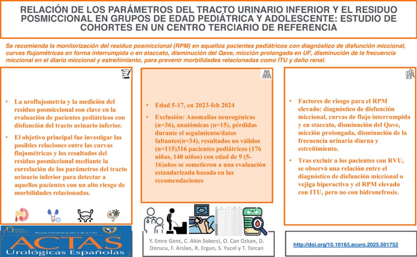 La uroflujometría y la medición del residuo posmiccional siguen siendo esenciales en la evaluación de pacientes con disfunción del tracto urinario inferior. El objetivo de este estudio fue identificar aquellos pacientes con un alto riesgo de infección o daño renal, según los parámetros del tracto urinario inferior.