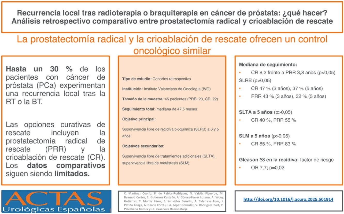 Recurrencia local tras radioterapia o braquiterapia en cáncer de próstata: ¿qué hacer? Análisis retrospectivo comparativo entre prostatectomía radical y crioablación de rescate