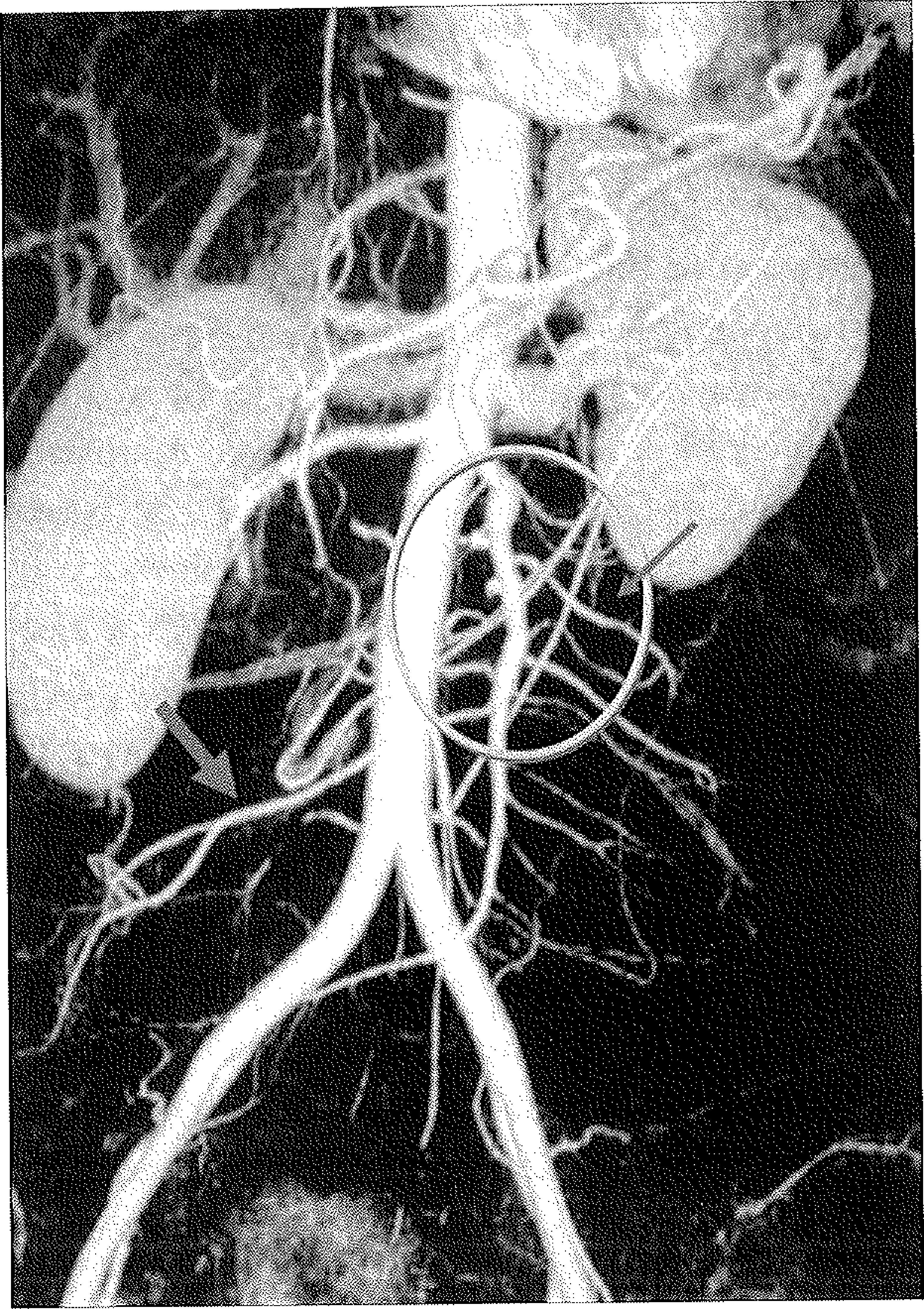 Dentro del concepto de displasia fibromuscular entran un grupo de lesiones arteriales no arterioscleróticas ni inflamatorias que pueden afectar a arterias de pequeño y mediano calibre. Aparecen con más frecuencia en mujeres con una edad media de 45 años [10]. Se puede presentar en forma de lesiones estenosantes, aneurismas o disección, siendo las primeras las más frecuentes. Su localización más habitual es en arterias renales, carótidas e ilíacas, pudiendo aparecer en múltiples lugares en un 28% de los pacientes afectados [11], En nuestro caso, al ser una mujer joven y sin antecedentes de interés, se pensó micialmente en una malformación o una displasia, lo que finalmente se confirmó mediante la anatomía patológica. La localización más distal del aneurisma facilitó el abordaje quirúrgico y, aunque durante el tiempo de clampaje arterial el intestino no manifestó signos de isquemia, preferimos realizar la revascularización preservando todas las ramas posibles, incluso reimplantando una rama yeyunal por su calibre y por ser una paciente que presentaba cuadros de dolor abdominal. Debido al diagnóstico de displasia fibromuscular debe seguir controlándose al paciente para realizar el diagnostico precoz de posibles nuevas lesiones. Ante el diagnóstico de un aneurisma de arteria mesentérica superior deberemos primero investigar su origen y descartar la existencia de lesiones en otras zonas que puedan ser de tratamiento prioritario.