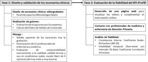 La adaptación y evaluación de la fiabilidad del instrumento para profesionales (BTI-Prof©) se desarrolló en 2 fases: 1) diseño y validación de los escenarios clínicos, y 2) evaluación de la fiabilidad.