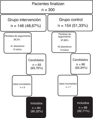 ParticipantesUn total de 300 pacientes que finalizaron el estudio EFAP (146 del grupo intervención y 154 del control).
