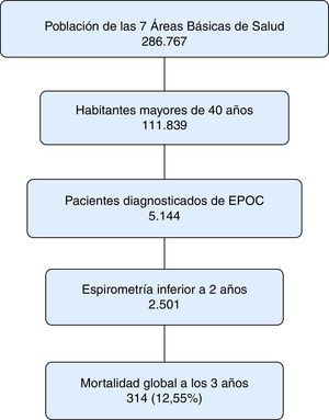 ParticipantesSe incluyó a los 2.501 pacientes mayores de 40 años diagnosticados de EPOC seguidos en Atención Primaria y con al menos una espirometría compatible con EPOC en los 24 meses previos al inicio del estudio (2010).