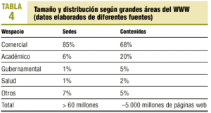 Sin embargo, las herramientas citadas anteriormente no son capaces, y posiblemente demuestren más esta debilidad en el futuro, de enfrentarse con el enorme crecimiento del volumen de información en la red. La tabla 4 indica que en el primer trimestre de 2001 están disponibles más de 3.500 millones de páginas, con un crecimiento estimado superior al 100% anual.