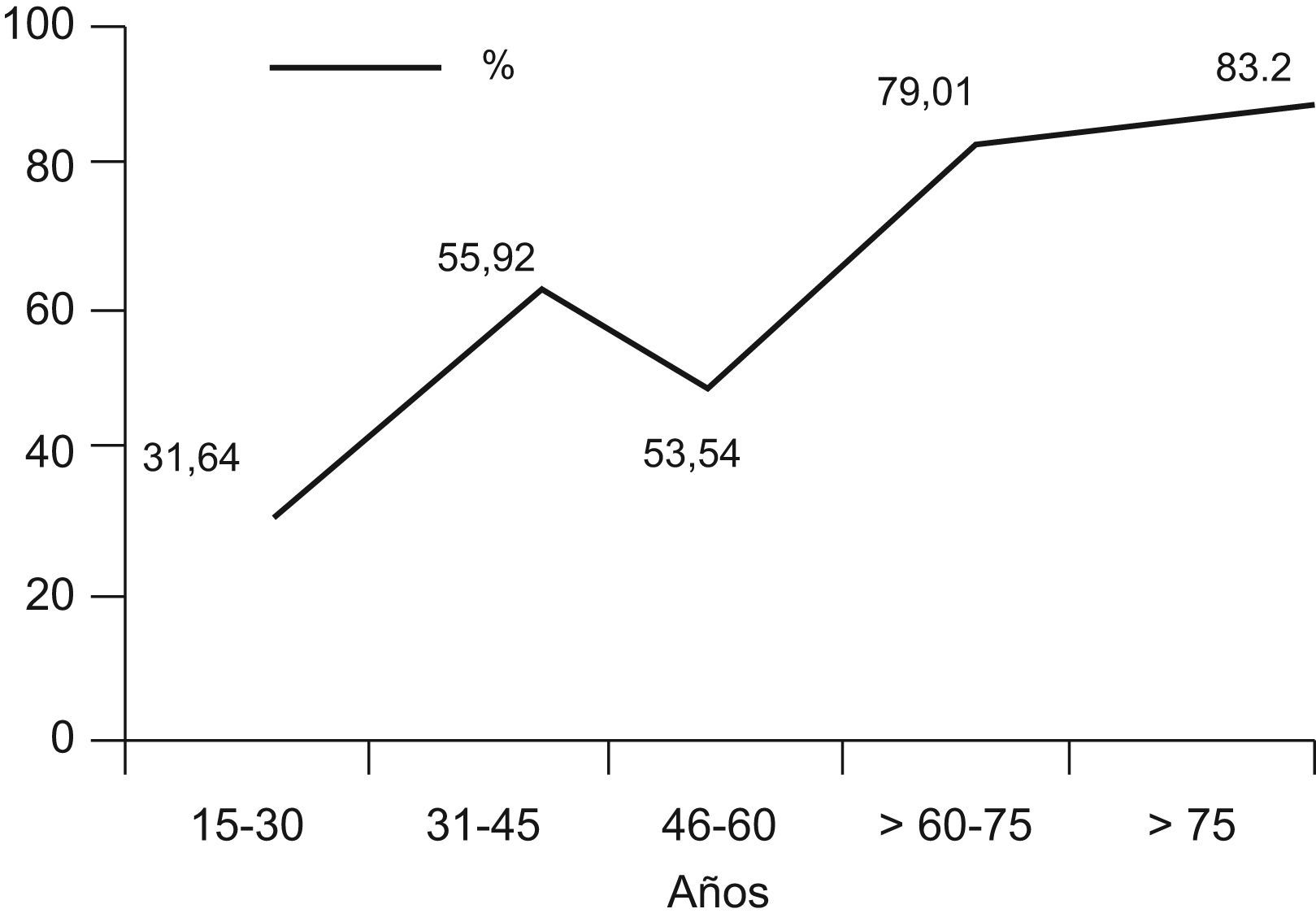 El 66,73% de las visitas finalizó estrechando la mano por parte de los pacientes, mayoritariamente en los grupos de más edad (79% de los pacientes entre 60–75 años; 83,2% de los pacientes mayores de 75 años) (fig. 1).
