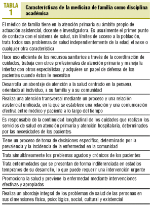 La medicina de familia y comunitaria se define como disciplina académica, y sus características como tal se recogen en la tabla 1.