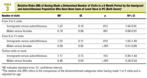 • The relative risk of being seen in general medicine is 7 times higher than the autochthonous population, but they do not use nursing services as much.