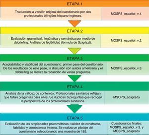 Esquema del estudio: Etapas de traducción, adaptación y validación del cuestionario MOSPSC al español