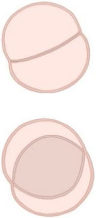 | Forma | Diferente tamaño y forma con un ángulo simétrico/asimétrico | Casi mismo tamaño y forma con ángulo simétrico | Dos comisuras normales y una fusionada más pequeña (50%) |