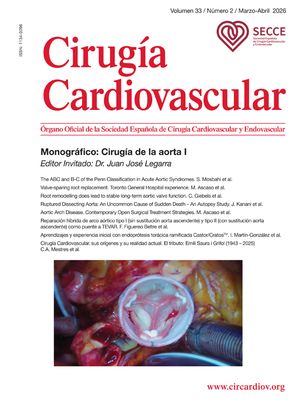 ConclusionesLa cirugía de preservación valvular aórtica en pacientes con aneurismas de raíz de aorta mediante las técnicas de reimplante o remodelado muestra unos resultados excelentes a medio y largo plazo y se ha convertido en una herramienta terapéutica indispensable para el tratamiento de esta patología. Hoy en día, no hay evidencia definitiva que respalde el uso de una técnica u otra. Sin embargo, en nuestra experiencia, consideramos que la técnica de reimplante de la válvula aórtica presenta ciertas ventajas que la hacen ideal para pacientes con conectivopatías o anillos aórticos severamente dilatados.