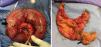 Paciente que ingresa al Servicio de Urgencias, con cuadro suboclusivo de 3 días de evolución. A la exploración física: distensión abdominal, dolor a la palpación, con datos sugerentes de abdomen agudo. Se decide revisión de gabinete, en los que se advierte: leucocitosis leve de 13,000, con neutrofilia de 86% y presencia de 4 bandas, hemoglobina de 11.9 g/dl, plaquetas de 180,000, tiempo de protrombina de 19 y tiempo parcial de trompoplastina de 33 s, con INR de 1.9. En la radiografía simple de abdomen en bipedestación, se observa: una asa de intestino delgado dilatada, con ausencia de aire en el ámpula rectal (fig. 1), tomografía axial computada simple con líquido libre en cavidad y engrosamiento de pared intestinal en la porción correspondiente al íleon, distensión franca sin datos de volvulación. Se identifica tumoración intraluminal con disminución de calibre de asas, posterior a dicha tumoración (fig. 2). Dados los hallazgos reportados, se establecen los siguientes diagnósticos diferenciales: volvulación intestinal, síndrome adherencial abdominal y de forma aislada, sin embargo, no se puede descartar la presencia de tumoración intestinal. Dada la evolución de cuadro suboclusivo y los hallazgos reportados anteriormente, se decide intervención quirúrgica, en la que se encuentra dilatación del íleon proximal con intususcepción franca, que presenta cambios francos de coloración sugerentes de isquemia (fig. 3). A la palpación de dicha zona, se detecta la presencia de tumoración intraluminal (fig. 4). Dada la poca viabilidad del intestino, se decide resección intestinal de aproximadamente 20cm, realizando una entero-entero anastomosis de manera manual. Durante su estancia intrahospitalaria, con mejoría significativa del cuadro abdominal, se realiza apoyo nutricional de forma parenteral; tras 5 días, se reinicia dieta oral, sin presentar datos de fuga anastomótica, se mantiene con adecuada evolución, por lo que se decide su egreso, para vigilancia extrahospitalaria.