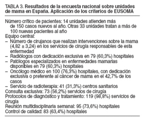 TABLA 3. Resultados de la encuesta nacional sobre unidades de mama en España. Aplicación de los criterios de EUSOMA
