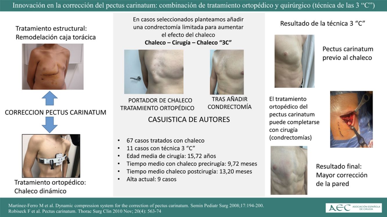 El pectus carinatum (PC) es una deformidad de la pared torácica caracterizada por una protrusión. Para su corrección, es fundamental la flexibilidad de la pared, pues establecerá la posibilidad de corrección mediante un tratamiento ortopédico o quirúrgico.