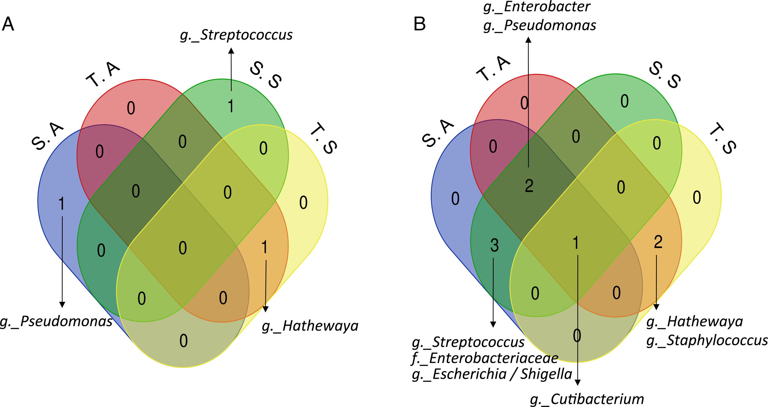 MetodologíaAnalizamos fragmentos transversales de placa de ateroma carotídeo (N=57) y suero (N=54) de los pacientes con sintomatología neurológica reciente y asintomáticos (grupo control). Se extrajeron los ácidos nucleicos de las muestras mediante digestión enzimática y homogeneización, previo tratamiento adicional con colagenasa tipo I en el caso de las placas. Se amplificó el RNA ribosomal bacteriano (gen 16S-rRNA) y se sometió a secuenciación masiva mediante a plataforma Illumina® Miseq. El análisis bioinformático, para identificar la composición taxónomica, y bioestadístico, para determinar los taxones significativos, del 16S-rRNA se realizó en el entorno R. Como control de contaminación se consideraron significativas ratios de especies bacterianas ≥10 respecto a controles negativos.