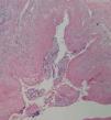 Caso clínicoMujer de 39 años de edad con antecedente de cesárea previa y dos abortos; con gestación actual de 19 semanas y rotura espontánea de amnios con diagnóstico de aborto inevitable. Se induce dilatación cervical y posterior a la expulsión fetal se realiza legrado uterino instrumentado sin lograr la evacuación completa de cotiledones aparentemente adheridos en sitio de cicatriz uterina previa condicionando hemorragia transvaginal de 1.500 mL. Se procede a realizar pinzamiento de arterias uterinas con técnica Zea y se realiza histerectomía total abdominal corroborando diagnóstico de acretismo placentario mediante histopatología (figs. 1 y 2).