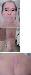 Figuras 1A a C. Lesiones cutáneas que presenta el paciente.