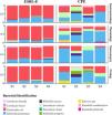 Diversity and bacterial species distributionDuring the R-GNOSIS study, a total of 198 CPE and 730 ESBL-E non-duplicated isolates were collected. As shown in a previous study,16K. pneumoniae (53.5%; 106/198) was the most frequent CPE species, followed by E. coli (19.2%; 38/198) and Enterobacter cloacae complex (11.1%; 22/198). Other CPE species such as Citrobacter freundii (4.5%; 9/198), Klebsiella oxytoca (4%; 8/198), Klebsiella aerogenes (3%; 6/198), Kluyvera spp. (3%; 6/198), Citrobacter koseri (0.5%; 1/198), Raoultella ornithinolytica (0.5%; 1/198) and Raoultella planticola (0.5%; 1/198) were sporadically detected, mainly during the first period. Conversely, the most frequent ESBL-producing microorganism was E. coli (78.5%; 573/730), followed by K. pneumoniae (17%; 124/730), while other ESBL-E species were occasionally detected (12 E. cloacae complex, 11 C. freundii, 4 K. oxytoca, 3 Enterobacter kobei, 2 C. koseri and 1 K. aerogenes). In order to analyze and compare the species distribution of both CPE and ESBL-E populations over time, four semesters within the R-GNOSIS study were defined (S1=March 2014–August 2014; S2=September 2014–March 2015; S3=April 2015–September 2015; and S4=October 2015–March 2016). CPE and E-ESBL species distribution and diversity are shown in Table S2 and Table S3, respectively. According to our previous study, the CPE species diversity decreased notably throughout the R-GNOSIS study (SDIS1=0.75, SDIS2=0.77, SDIS3=0.62 and SDIS4=0.43) (p=0.051). Changes in the species distribution were observed during the studied period, as a higher K. pneumoniae prevalence was found in the last part of the study, along with an increased E. coli population and a reduced incidence of other minority species. Conversely, species diversity among ESBL-E carriers remained virtually stable over time (SDIS1=0.29, SDIS2=0.36, SDIS3=0.41, and SDIS4=0.34) (p=0.9). Overall, changes in species distribution were not observed and ESBL-producing E. coli was the predominant species throughout all the study. Composition ratio of CPE and E-ESBL species by semesters and wards is shown in Fig. 3.