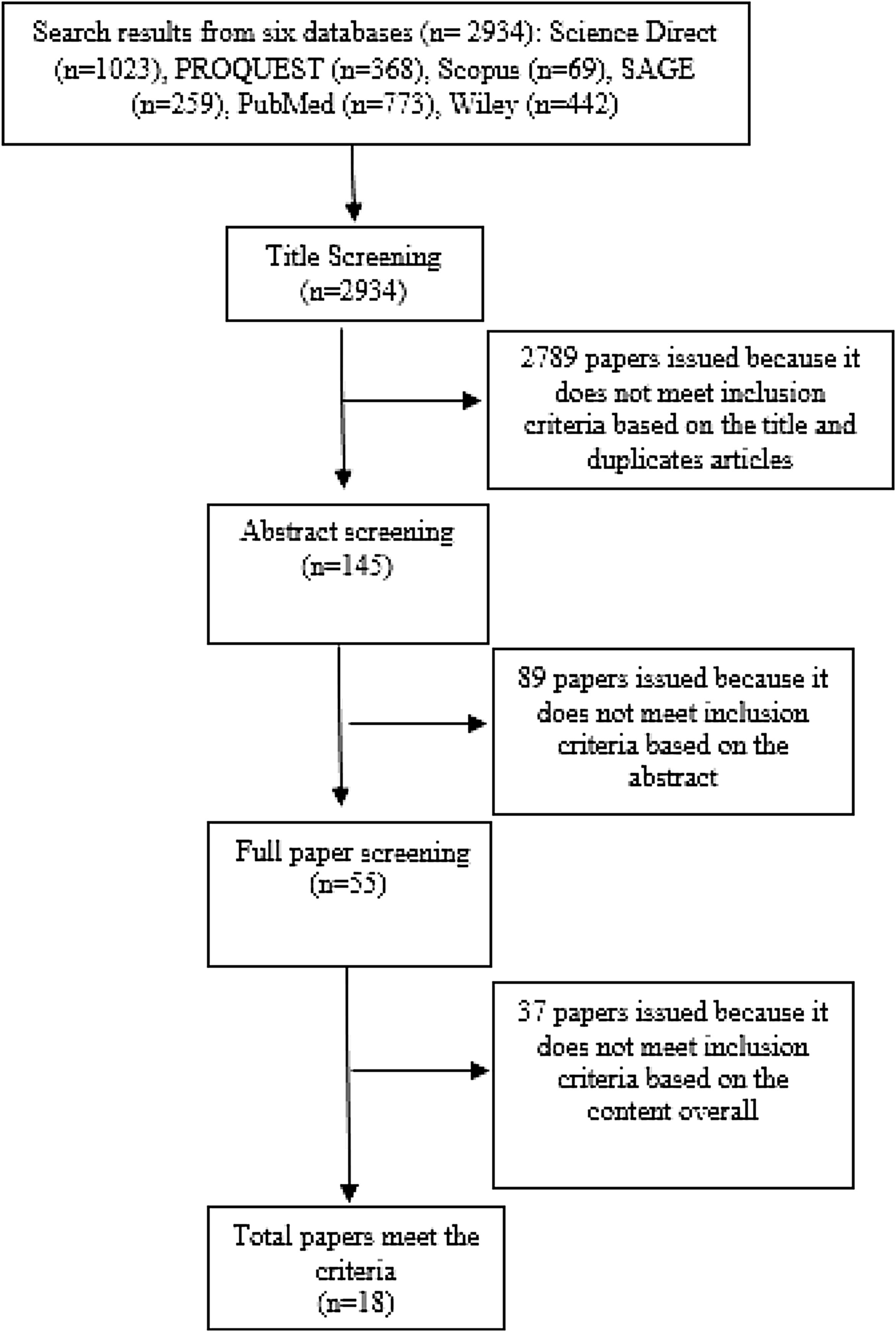 Más datosComprehensive nursing cares are important to provide total healthcare for the patient. However, there are miss nursing cares that nurses left to be done. This research is aim to discover the varieties of missed nursing care and to understand their possible impacts on nurses and patients. A systematic review was utilized. Data were collected from six databases: ScienceDirect, ProQuest, Scopus, SAGE, PubMed, and Wiley, from 2015 to 2019. Search results from the six databases (n=2934) sorted into 18 collected articles emphasized on three categories: missed nursing care, influencing factors, and impact of nursing care. The factors of missed nursing care are nurses’ perception on patient safety, self-accountability, etc. The possible effects are patient and nurse satisfactions decline, and cost swell. Planning, intervention, and documentation are notoriously often missed by nurses. The reasons behind this issue are nurses’ characteristics, HR problems, communication, workspace, and manager influence. These will have a great impact on patient satisfaction and nurse job satisfaction. Therefore, the role of nursing managers is large in improving missed nursing care.