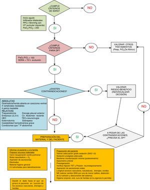 Existen distintos estudios centrados en la respuesta de los pacientes con SDRA tratados con DP en relación con la oxigenación, clasificando a dichos pacientes en respondedores persistentes, respondedores no persistentes o no respondedores13,15. Así mismo, pueden encontrarse artículos que describen la ausencia de mejora en la mortalidad de los pacientes sometidos a este procedimiento9,11 aunque más recientemente se han publicado estudios que proponen todo lo contrario, obteniendo una mejora de la supervivencia16 y mostrando, incluso, evidencia científica en pacientes con SDRA grave tratados precozmente con DP11.