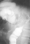 Fig. 1. Enema con contraste que muestra una estenosis irregular de la flexura esplénica indicativa de neoplasia.