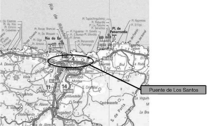 Figura 2. Plano de situación de la ría del Eo y el puente de Los Santos.
