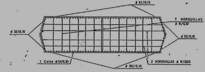 • La armadura dispuesta en los encepados resultaba suficiente si se tenía en cuenta la contribución de la armadura dispuesta entre bandas de pilotes.
