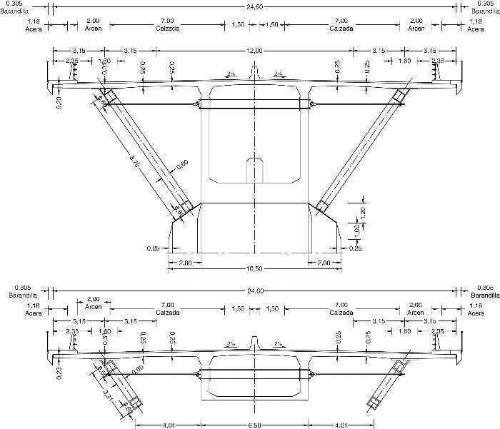 Figura 9. Secciones transversales propuestas en el anteproyecto de ampliación con celosías.
