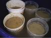 Tres mezclas de barro estabilizadas con cemento, con trozos de bloques de arcilla y cemento.